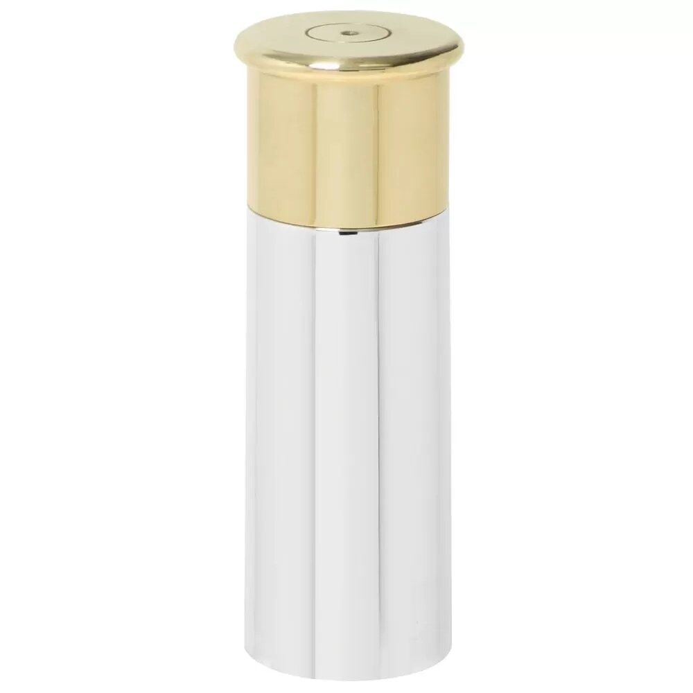 6OZ PEWTER SHOTGUN CARTRIDGE HIP FLASK WITH BRASS LID