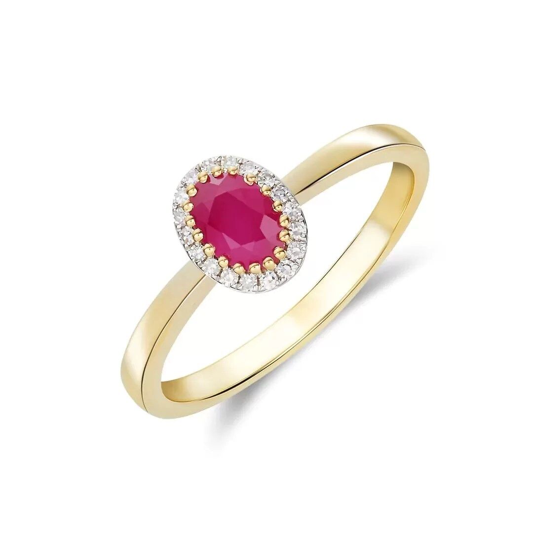 9ct Yellow Gold Ruby & Diamond Cluster Ring