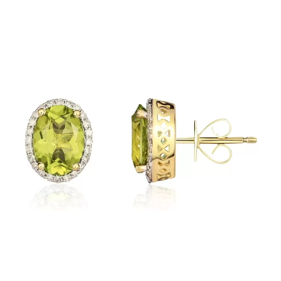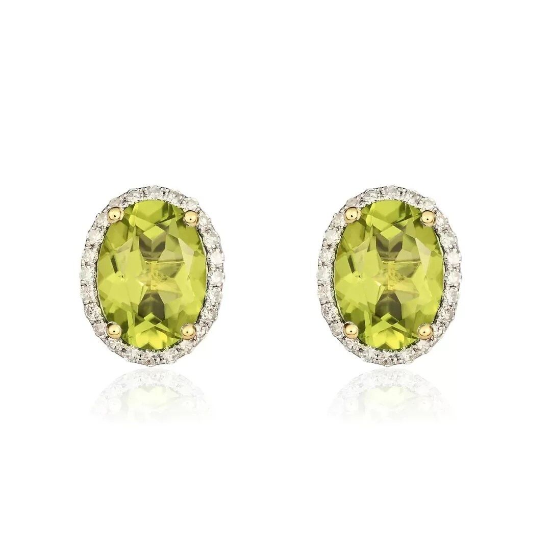 9ct Yellow Gold Oval Peridot & Diamond Cluster Stud Earrings