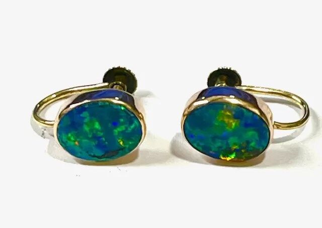 Vintage 9ct Gold Opal Triplet Earrings